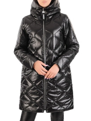 Płaszcz zimowy damski, czarny, pikowany płaszcz z kapturem idealny na jesień, zimę, duże rozmiary 37815