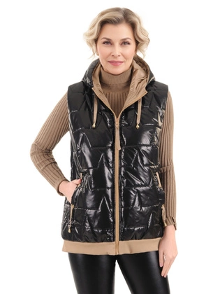 Czarna pikowana kamizelka damska z kapturem – lekka kamizelka na wiosnę i jesień 39520