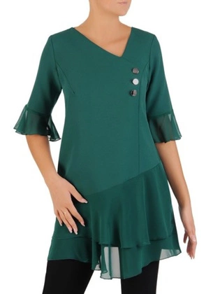 Szyfonowa zielona tunika z falbanami 27283