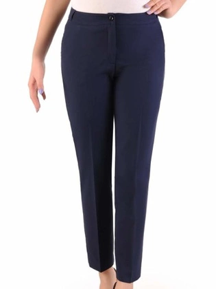 Spodnie damskie, eleganckie, proste, granatowe spodnie materiałowe z kieszeniami, duże rozmiary 13081