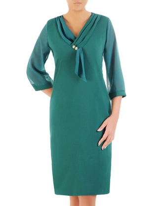 Sukienka o trapezowym kroju, kreacja z ozdobnymi mankietami 35109