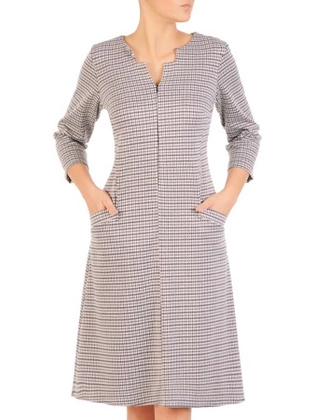 Bawełniana sukienka z zamkiem, rozkloszowana kreacja z kieszeniami 30536