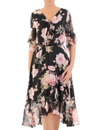 Sukienka w kwiaty, zwiewna kreacja z szyfonu 33331