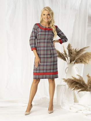 Jesienna sukienka w kratę, kreacja z czerwonymi wstawkami 31350