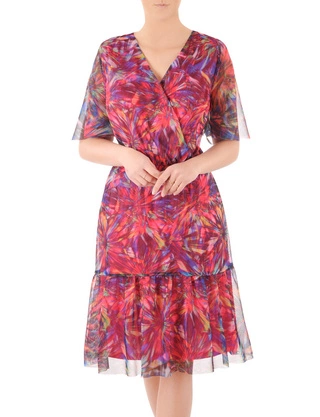 Trapezowa sukienka z szyfonu, zwiewna kreacja w kwiaty 32811