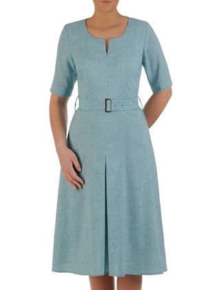 Sukienka z lnu, modna kreacja z suwakiem na dekolcie 25068