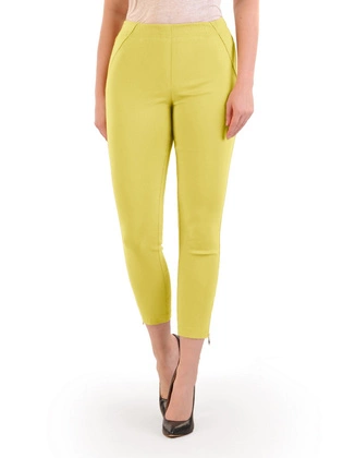 Spodnie damskie, cytrynowe dopasowane spodnie rybaczki z ozdobnymi zamkami, duże rozmiary 37644