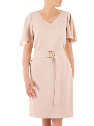 Beżowa sukienka z rozszerzanymi rękawami 36328