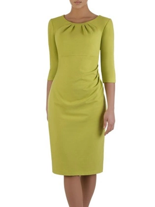 Sukienka z ozdobnie wykrojonym dekoltem Grażyna V, wiosenna kreacja z dzianiny