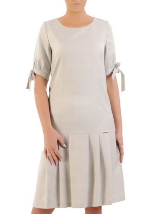 Sukienka w kratkę, kreacja z plisowanym dołem 33283