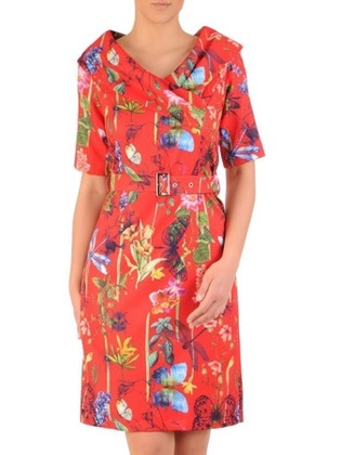 Sukienka wizytowa, wiosenna kreacja z paskiem podkreślającym talię 29663