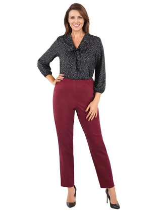 Bordowe spodnie damskie z wysokim stanem – prosty fason z gumką w pasie, wygodna tkanina z wiskozą 40467