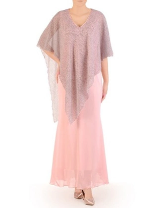 Szyfonowa, pudrowa sukienka maskująca niedoskonałości 30012