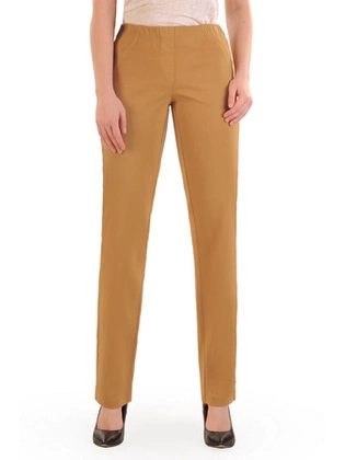 Spodnie damskie, musztardowe proste spodnie z gumką w pasie, tylnymi kieszeniami, duże rozmiary 34871