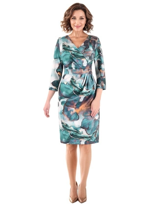 Prosta sukienka damska z wyszczuplającymi marszczeniami 32075