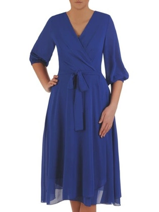 Szyfonowa sukienka o kopertowym kroju, zwiewna kreacja w kolorze chabrowym 21574