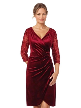 Aksamitna sukienka wyszczuplająca z koronkowymi rękawami 18890