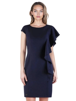 Sukienka wyjściowa, granatowa kreacja z ozdobną falbaną 22221