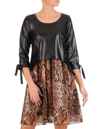 Elegancka sukienka z modnym zwierzęcym wzorem i dodatkiem ekologicznej skóry 27892