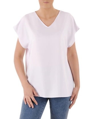 Bluzka damska z wyciętym dekoltem i wiązaniami na rękawach 34735