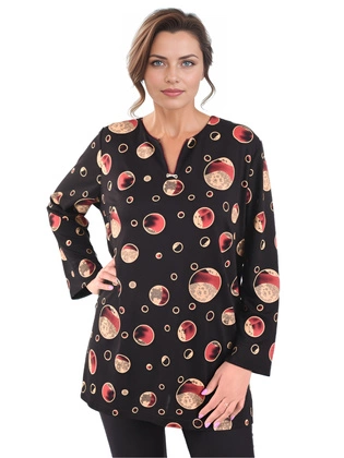 Czarna bluzka damska w grochy z wiskozy – elegancka bluzka z dekoltem w serek 40288