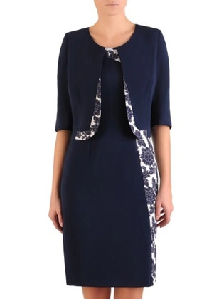 Kostium damski, wzorzysta sukienka z gładkim żakietem 29910