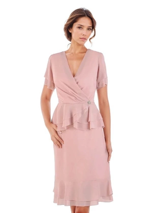 Sukienka wyszczuplająca z żakietem, pudrowy róż — komplet damski midi na wesele 39956
