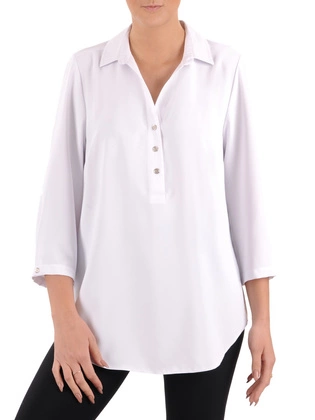 Kreszowana biała koszula damska plus size z podwijanymi rękawami 38874