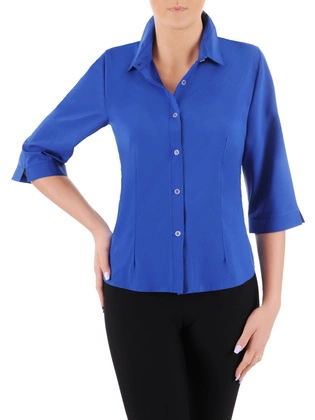 Koszula damska, niebieska koszula w groszki z podwijanymi rękawami 39393