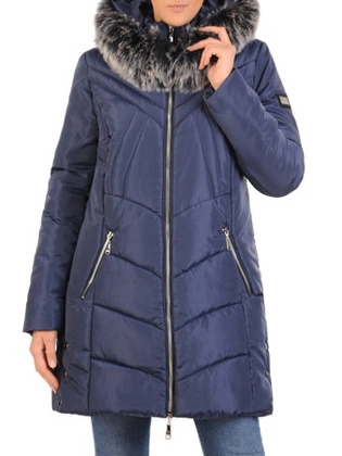 Kurtka damska zimowa, granatowa pikowana kurtka z ciepłym kapturem, idealna za zimę 31102