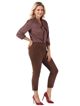 Spodnie damskie, brązowe dopasowane spodnie rybaczki z ozdobnymi zamkami, duże rozmiary 35356