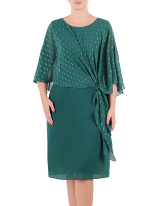 Zielona sukienka z ozdobną narzutką i połyskującą aplikacją 37141