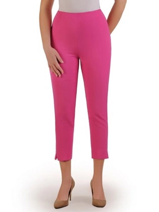 Spodnie damskie, materiałowe, amarantowe, dopasowane cygaretki, duże rozmiary 25758