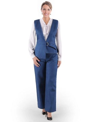 Jeansowa kamizelka damska plus size z ozdobnym zapięciem 38757