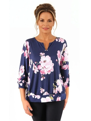 Bluzka damska, elegancka bluzka w kwiaty z ozdobnym dekoltem, duże rozmiary 39108