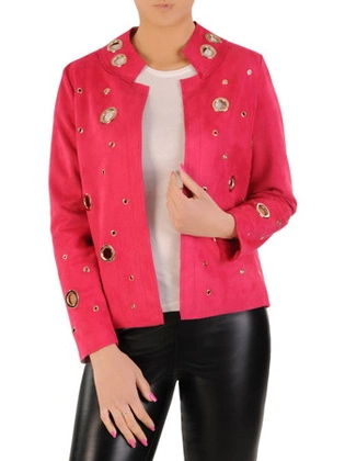 Żakiet damski zapinany na guziki, elegancki różowy żakiet w klasycznym fasonie, duże rozmiary 26137