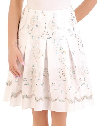 Rozkloszowana spódnica z tkaniny bawełnianej z ozdobnymi wstawkami 31170