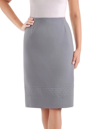 Spódnica damska plus size, prosta z ozdobnymi, wyszczuplającymi przeszyciami 38309