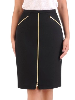Spódnica damska Nadia, czarna kreacja z ozdobnymi suwakami.