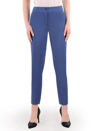 Spodnie damskie, dopasowane, niebieskie spodnie z bocznymi kieszeniami, duże rozmiary 35409