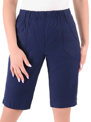 Szorty damskie, granatowe szorty z wiskozy z gumką w pasie, przednimi kieszeniami, duże rozmiary 37561