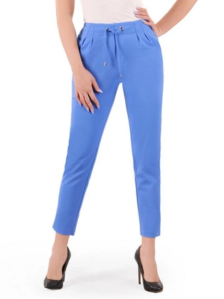 Modne eleganckie spodnie damskie z dzianiny – model z ozdobną klamrą, kieszeniami i mankietami 35413