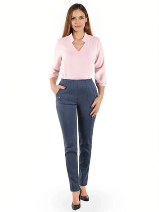 Spodnie, chabrowe, dopasowane spodnie damskie z gumką w pasie i przednimi kieszeniami, duże rozmiary 35359