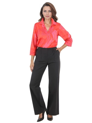 Spodnie damskie czarne z kantem – elegancki prosty krój z kieszeniami, idealne do stylizacji wizytowych i na co dzień 40504