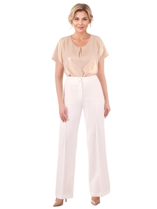 Szerokie spodnie damskie, kremowe spodnie na gumce z wysokim stanem 39390