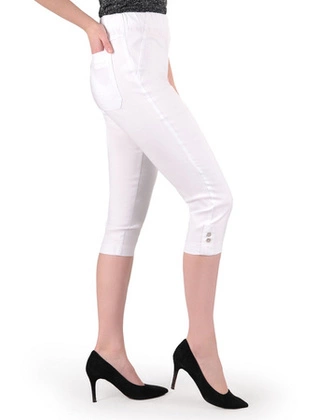 Spodnie damskie, dopasowane, białe rybaczki z gumką w pasie, duże rozmiary 35213