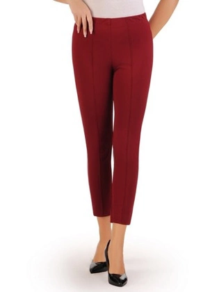 Spodnie damskie, dzianinowe, bordowe spodnie w kant z gumką w pasie, wyszczuplające legginsy, duże rozmiary 27324