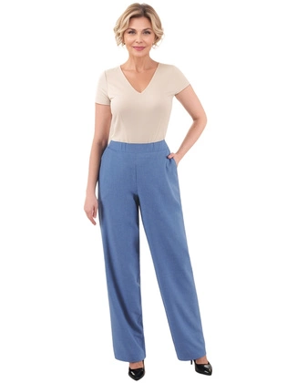Szerokie spodnie damskie, spodnie w kant z gumką w pasie, bocznymi kieszeniami 37509