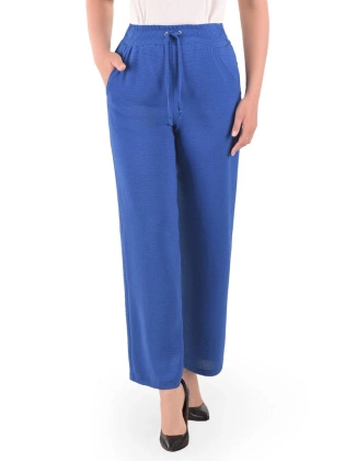 Chabrowe spodnie damskie z wiskozą – modne, lekkie spodnie wizytowe z gumką i kieszeniami 40126