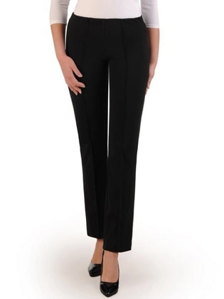 Spodnie damskie, czarne, dzianinowe, proste spodnie z przeszyciami i gumą w pasie, duże rozmiary 25844